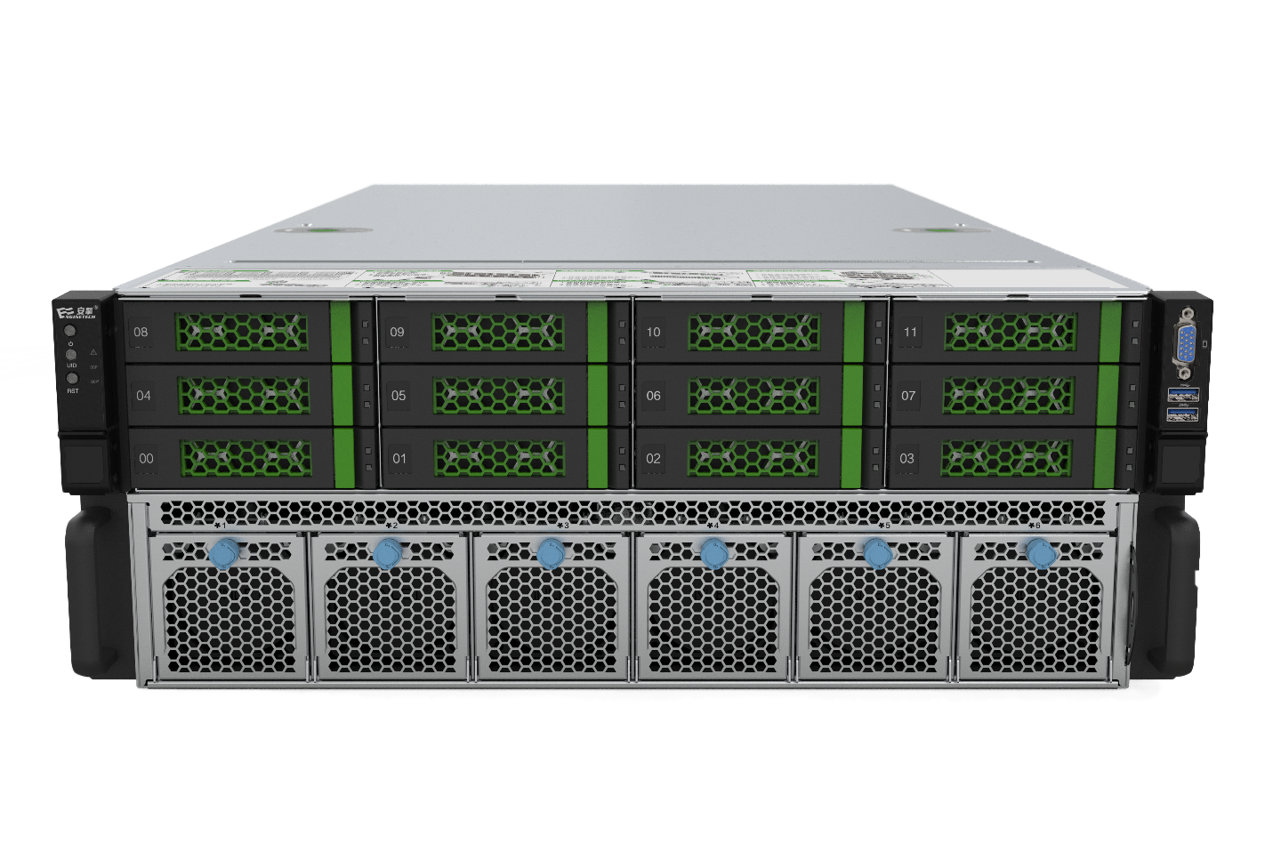 可选支持12块 3.5英寸或 24 块 2.5 英寸硬盘,支持热插拔,最多支持 24 块U.2 NVMe SSD, 提供海量存储空间;