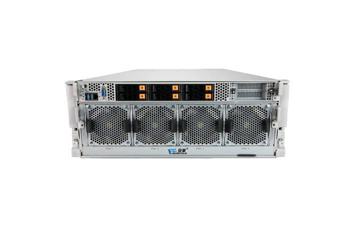 配置 10 个 PCI-E4.0 插槽,其中 9 个支持 PCI-E4.0×16 速率,提供先进扩展能力,并可搭配最新的 100G 以太网卡和 400G Infiniband 网卡;提供先进 IO 吞吐能力。